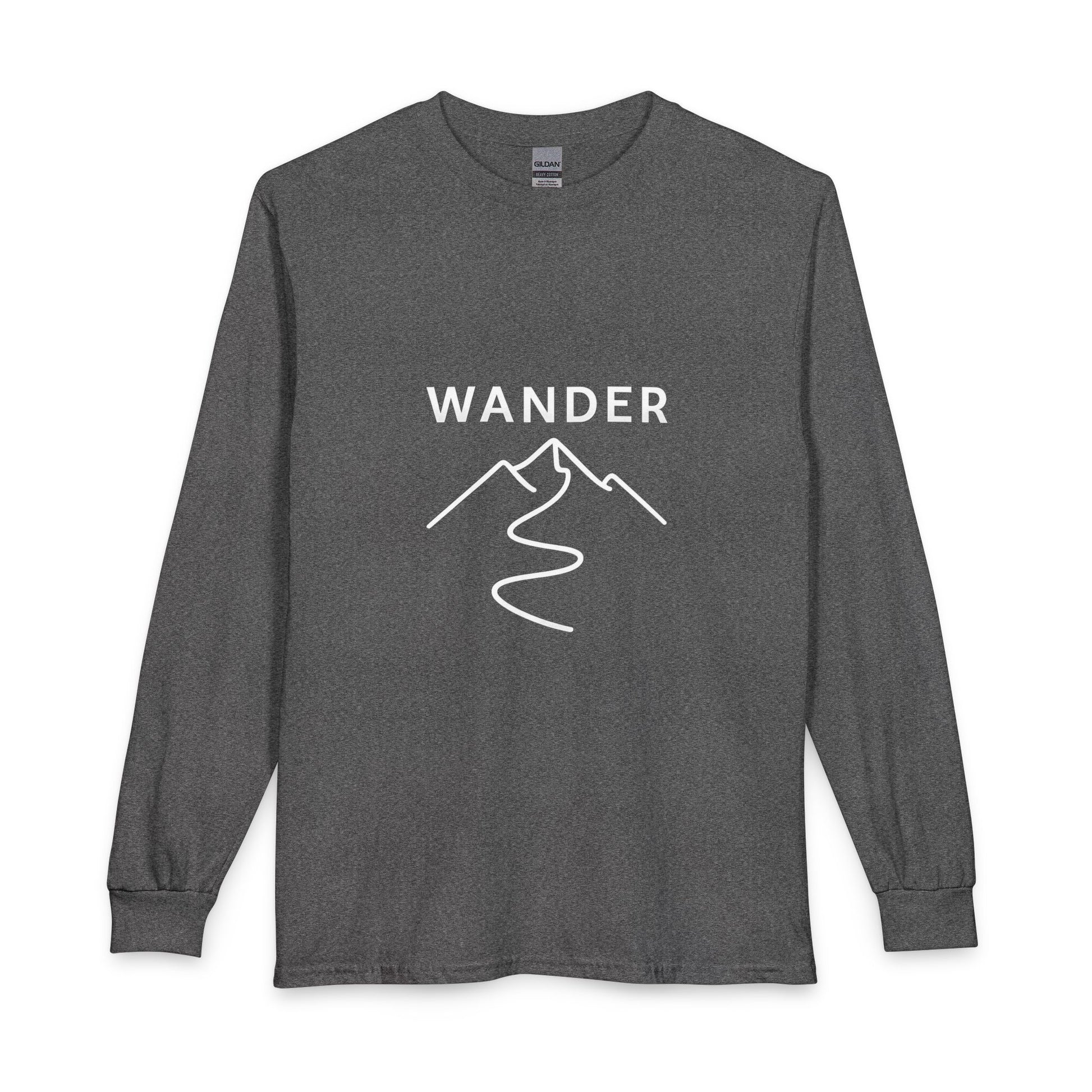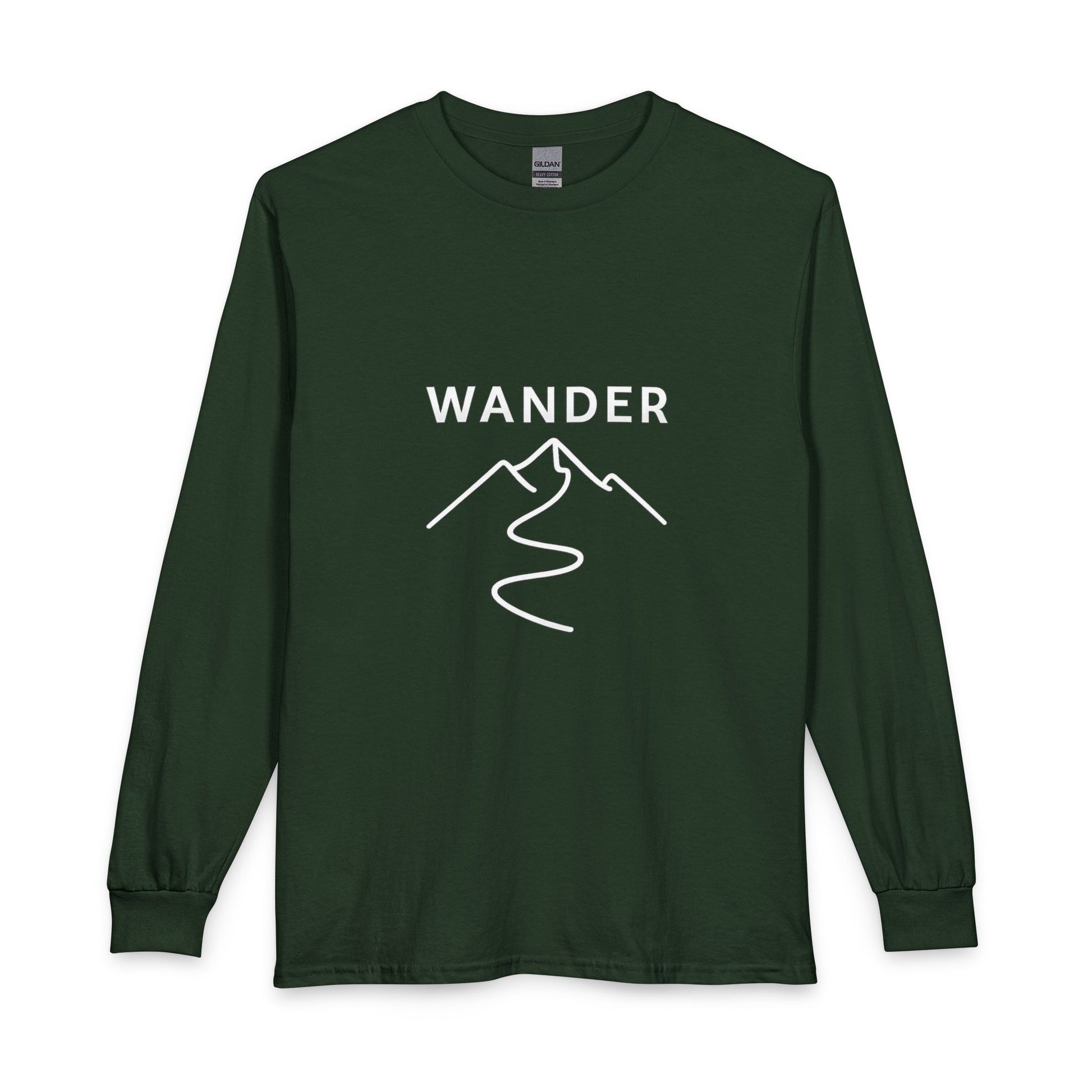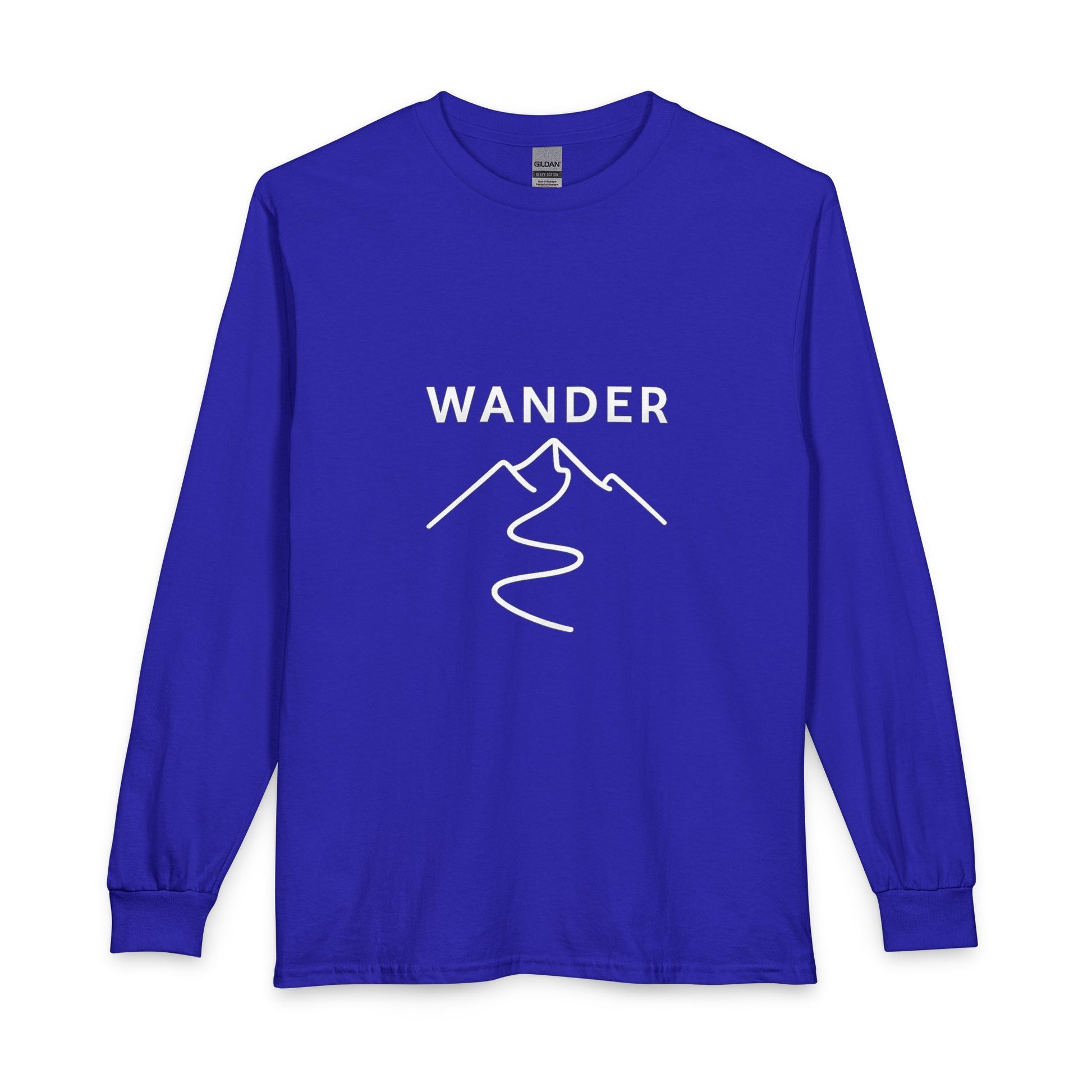 Feel the slow pull of the path every time you slip this long sleeve on. Clean cotton sets the stage for a minimalist, line-drawn mountain and winding trail, anchored by the quiet word WANDER — an understated nod to movement without a fixed destination. It resonates with those who aren’t standing still, whether the journey is inward or across unfamiliar ground.